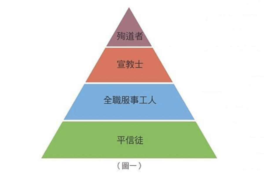 神聖金字塔和聖俗二分的觀念是信徒生活的誤區(圖一)。金字塔的底層是平信徒,上一層是全職工人和宣教士,再上是殉道者。似乎是以犧牲多少來衡量愛主多少。