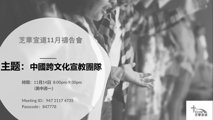 詳情請參:https://newmedia.cccmforhim.org/2022/11/06/芝華十一月禱告會-中國跨文化宣教團隊/