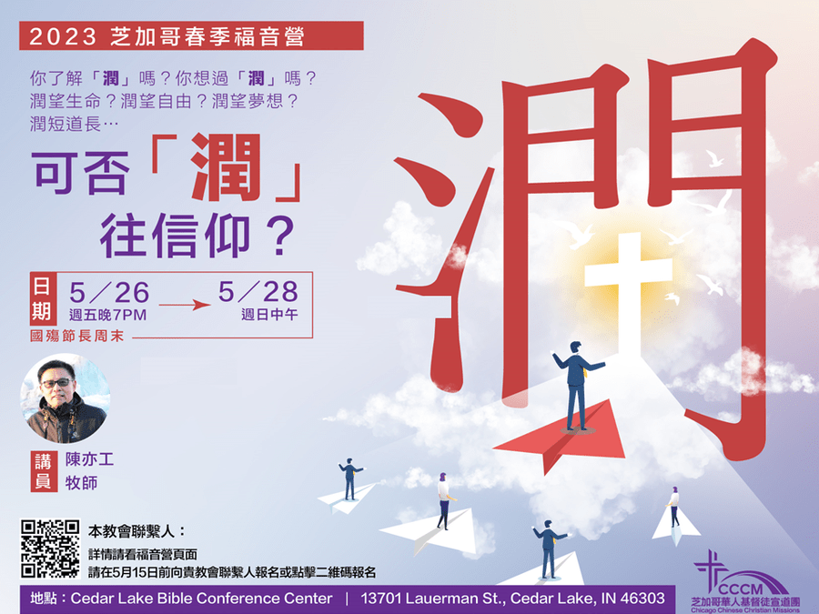 歡迎您邀請福音朋友、家人,一同「潤」(Run)來 Cedar Lake參加今年的芝加哥福音營!